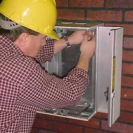 Step 3: Mount the enclosure to the wall using the recommended mounting hardware. If the mounting surface is not flat, locate the corners of the enclosure which are not flush to the wall. Adjust the shim bolts located in each corner of the enclosure. After adjusting the shim bolts, tighten the enclosure to the wall. |
