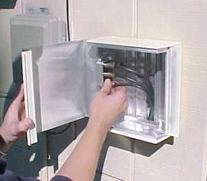 Step 2: Route the wires in to the enclosure through the knockouts. Install devices (splitters, ground blocks, etc.) directly into the screw bosses located on the back and sides of the HIE, using #10x1/2" metal screws. This will insure a proper ground for all devices that are attached to the HIE if the HIE is grounded properly. |